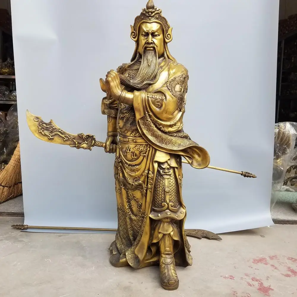 Product Name: Home Decor 37" Chinese Seikos Bronze Guan Gong Statue Guan Yu Wearing A Dragon Pattern Cloak Guan Gong Knife