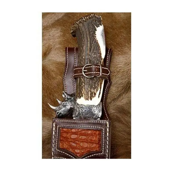 Special Offer Tooth Knife Luxury Big Five B.F-RHINO 24 Cm Alloy Steel Sheet And Deer Antler Handle With Sterling Silver. Discount 0% Today!