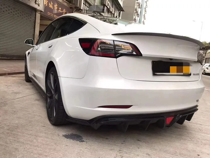 Special Offer One Set Car Bodykit Front Rear Bumper Lip Carbon Fiber Front Fog Lamp Wind Knife Decoration For Tesla Model 3 Car Rear Spoiler Discount 10% Today!